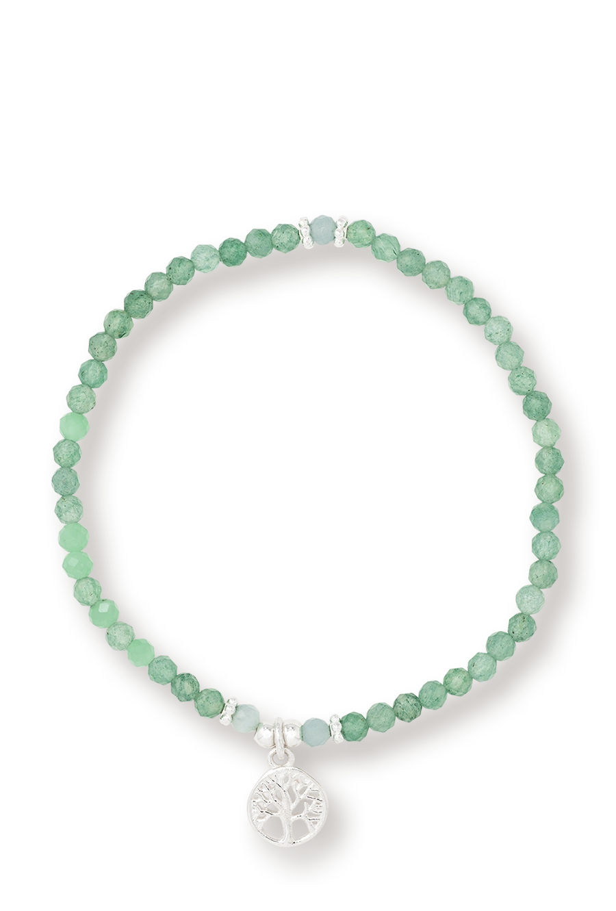 • Aventurin-Armband mit Lebensbaum-Anhänger in Silber und Zwischenteilen aus Amazonit und Silber
