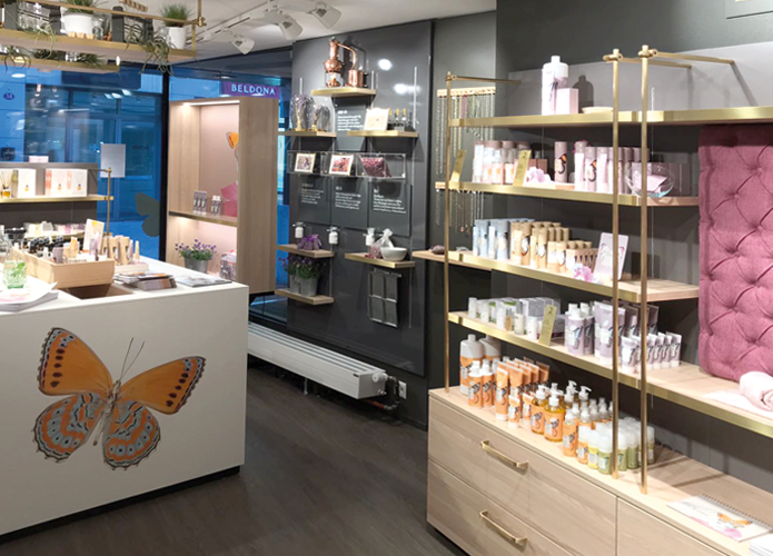Beraten, mischen, probieren und Wissen weitergeben – in der neuen farfalla Filiale in St.Gallen wird das neue Pflegekonzept erlebbar und spürbar. Dominiert wird die Räumlichkeit in der Neugasse 35 vom sogenannten Mischwagen, an dem das fundiert naturkosmetisch- und aromatherapeutisch-geschulte Personal für jeden Kundenwunsch individuell zugeschnittene Rezepte entwickeln, ausprobieren und mit nach Hause geben kann. Regelmässige Workshops zu DIY-Themen aus den Bereichen Haut- und Aromapflege gehören unbedingt dazu.