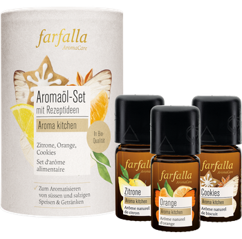 Kochen mit ätherischen Ölen eröffnet eine neue Dimension des Geschmacks. Ob Getränke, Salate, Süssspeisen oder herzhafte Gerichte – die natürlichen Aromen heben unsere Expertimentierfreude in der Küche. Mit den Zitrusölen Zitrone und Orange sowie der würzig-süssen Gewürzkomposition «Cookies» erhalten Rezeptklassiker einen aromatischen Twist, und innovative Kreationen finden Einzug in den Speiseplan. Lust auf mehr Aroma?
