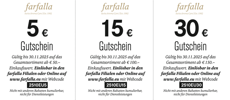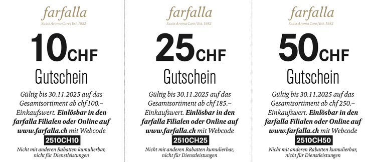 Einfach den entsprechenden Rabattcode (je nach Währungsregion unbedingt Euro- oder CHF-Gutschein verwenden) im Warenkorb beim Bezahlen eingeben. Nicht mit anderen Rabatten (AC/WV) kumulierbar. Nicht für Dienstleistungen, wie z.B. das Kosmetikstudio, gültig.