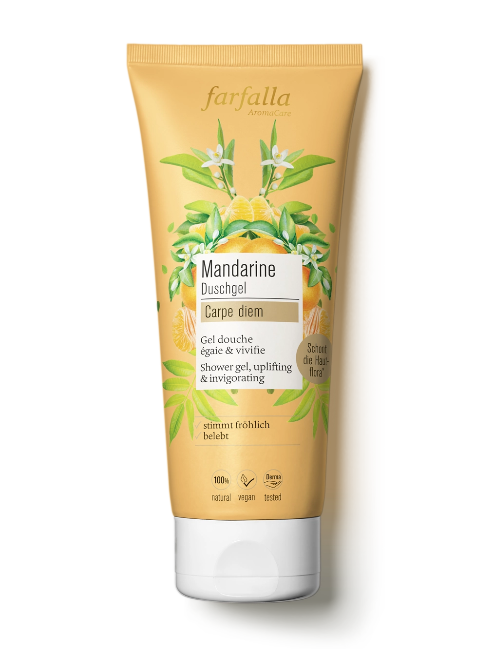 - Description: Pour une douche hydratante et euphorisante. Préserve le taux d’hydratation de la peau, revitalise avec l’huile essentielle vivifiante de mandarine.