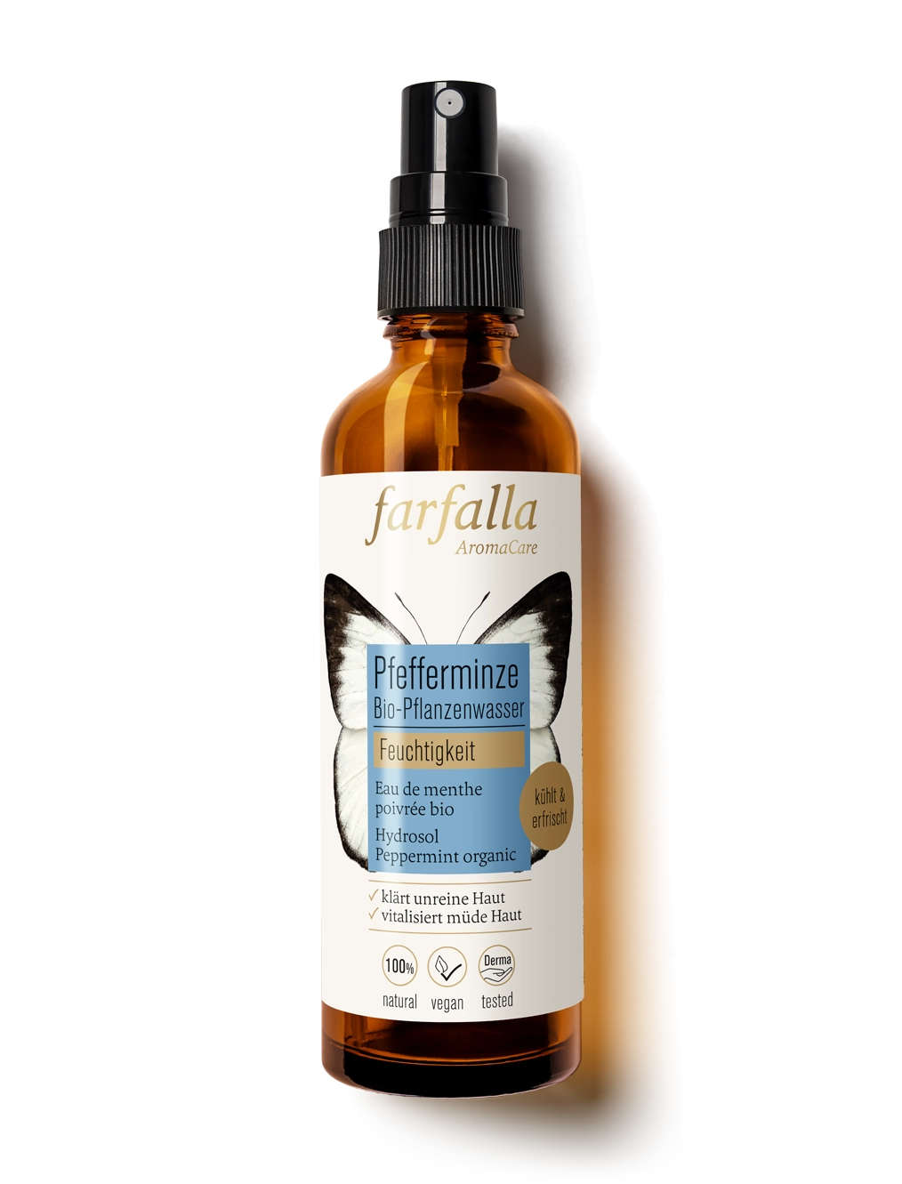 Das frisch duftende Bio-Pfefferminzhydrolat vitalisiert müde Haut und eignet sich als klärendes Gesichtswasser bei unreiner Haut. Als kühlender Spray wird es gerne für Gesicht und Dekolleté verwendet – herrlich erfrischend und kühlend ist es nicht nur im Sommer, sondern auch bei Hitzewallungen. Es empfiehlt sich auch zum Gurgeln für einen frischen Atem und ist ein hilfreicher Zusatz bei Wadenwickeln.